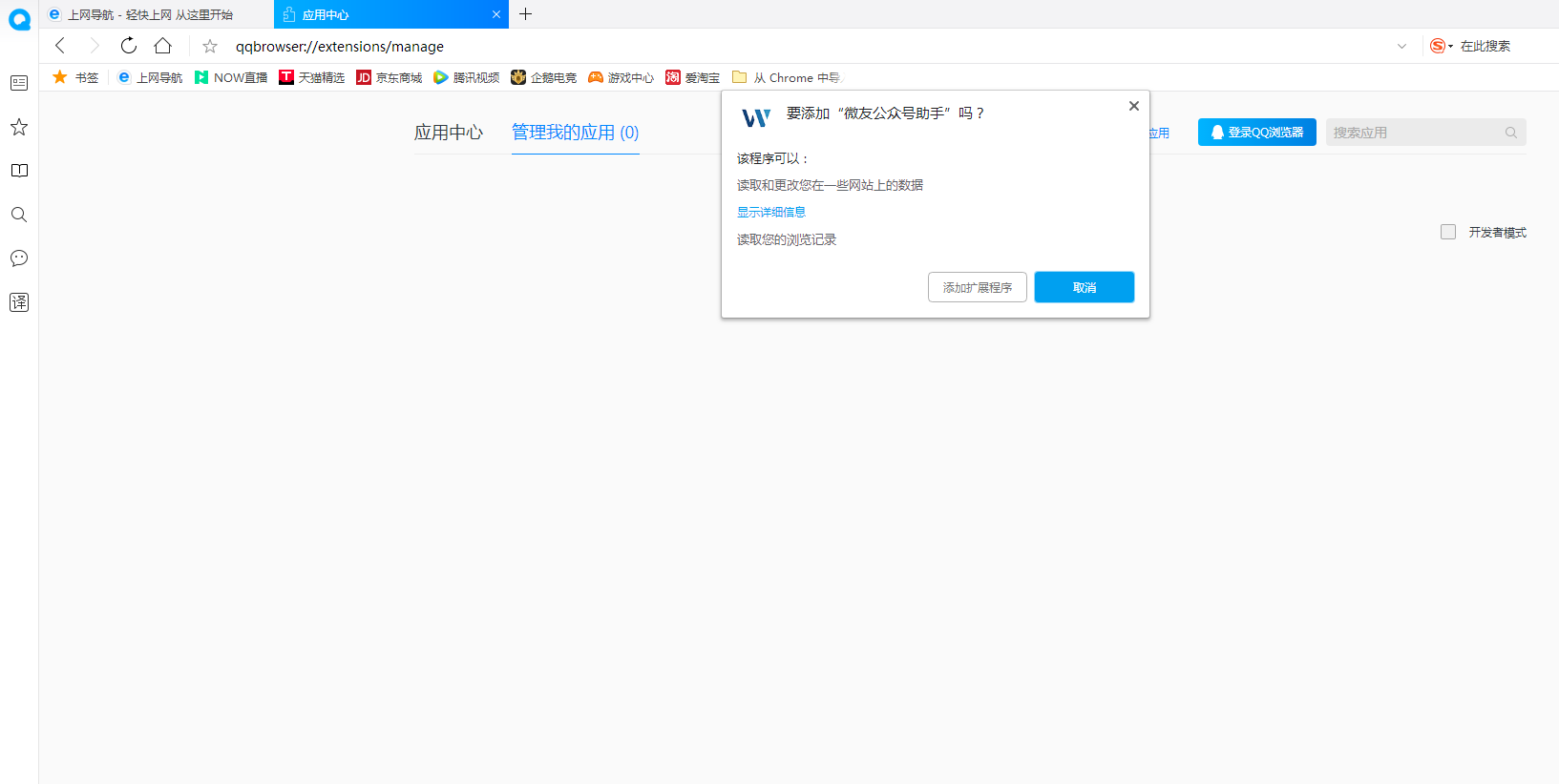 微友浏覽器插件在qq浏覽器的安裝教程
